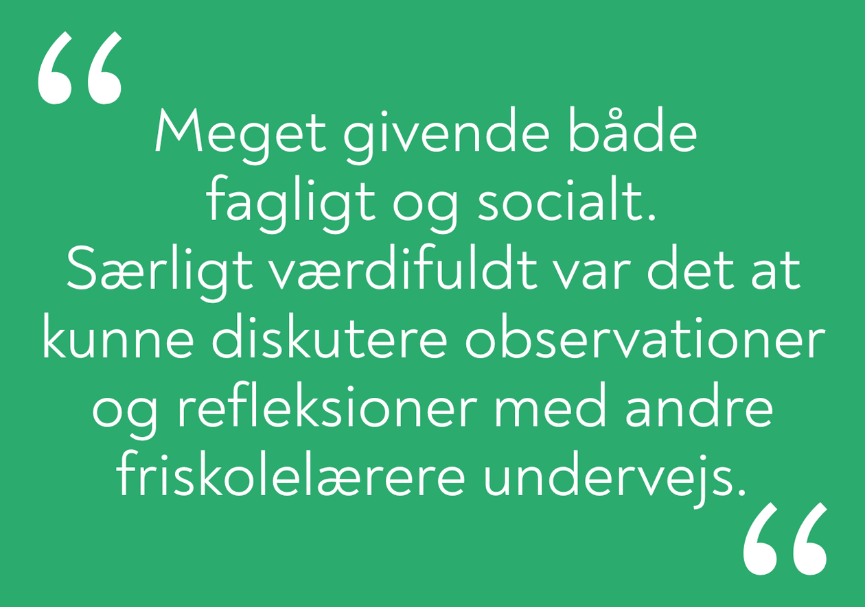 I november går turen til Stockholm, hvor deltagerne besøger svenske friskoler og arbejder med inspiration og udvikling på tværs af skoleformer. Læs mere her.