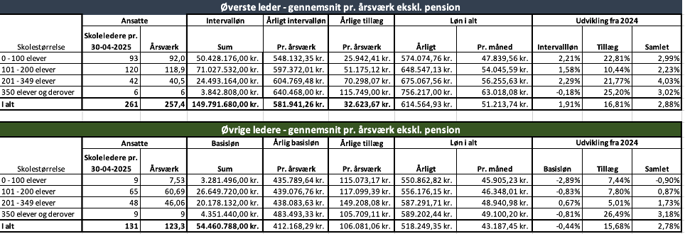 Skolens øvrige lederes løn er steget med 2,78 pct. fra 2024 til 2025.